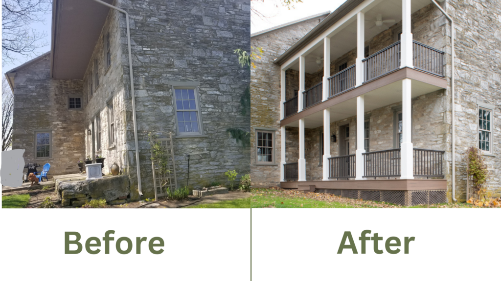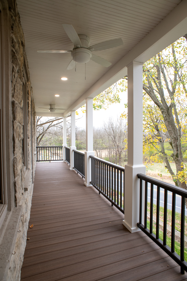 – 1/2″ x 3 1/2″ Azek E&CB ceilings on both porches