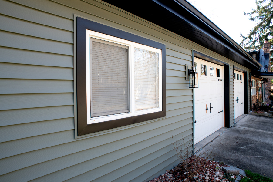 – Double 4.5″ straight lap Charter Oak siding. Color: Mountain Fern