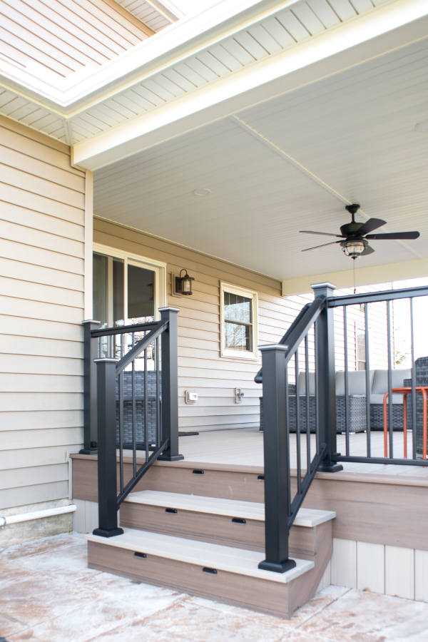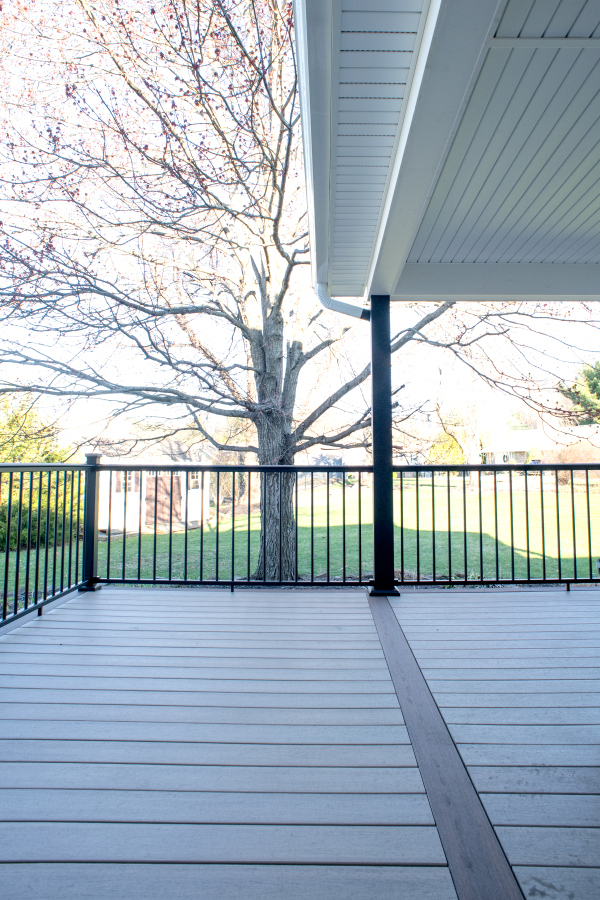 – 5.5″ TimberTech by Azek flooring and stair treads. Color: French White Oak