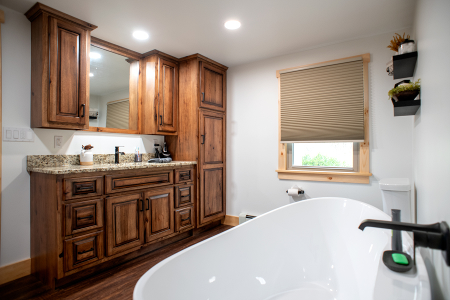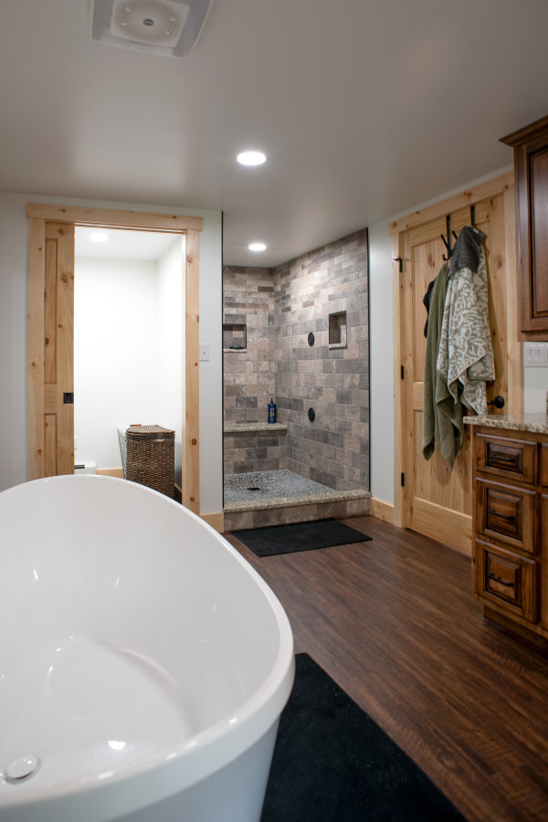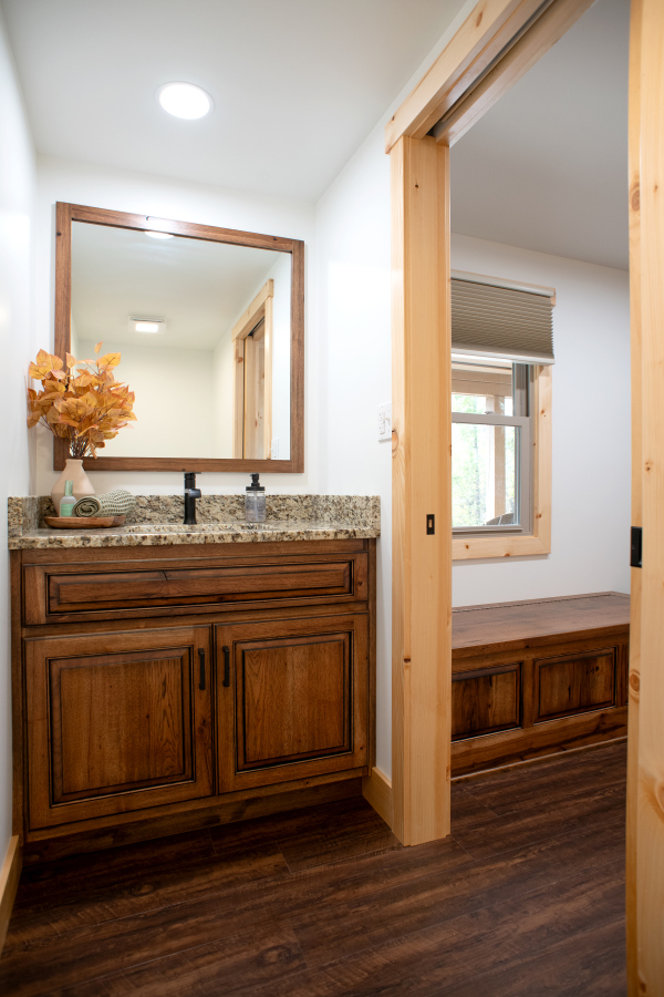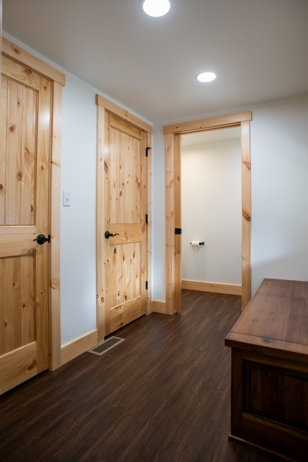 – Six-panel pine interior doors with clear coat